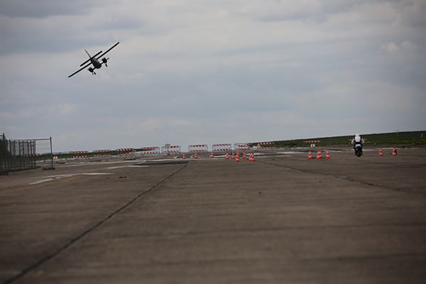 前面講到這場DSSC跟German Race Wars汽機車聯合活動,是在Eisenach郊外的機場舉辦。搞不好有讀者會以為是廢棄機場,但實際上這座機場是有在營業的,而且比賽活動這四天還是照常營業,只是畫出一小塊跑道給汽機車作直線加速賽使用,所以在直線加速賽進行時,還是可以看到小飛機起降的畫面,這種場面在其他場地可是看不到的!