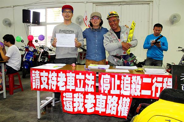 老車事務所到場請騎士支持二行程老車立法連署活動。