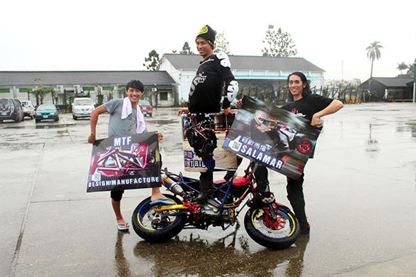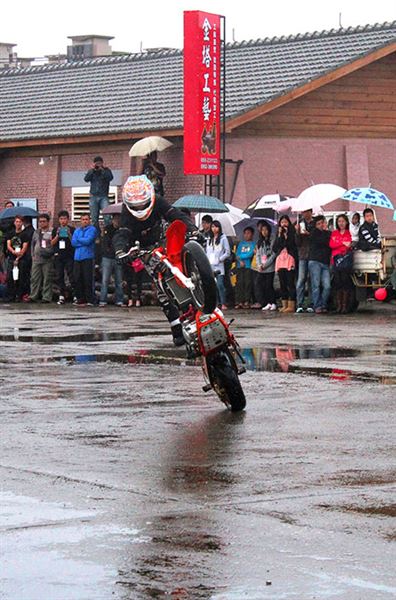 特技車騎士無懼場地濕滑,冒雨演出