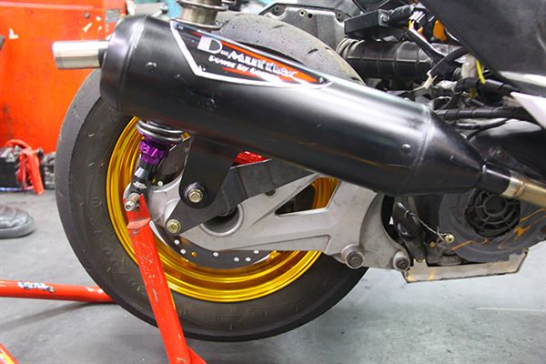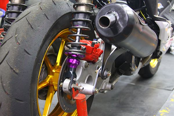 雖然此車是125C組的賽車,改裝幅度並不大,但精細度店家可是斤斤計較、力求完美絲毫不馬虎,不論是懸吊系統的選用、傳動的配置、就連後制動系統也追求細膩的手感,改裝可調式的拉桿的,在引擎動力方面使用科學化的方式來針對車輛作調整,數字會說話,一台賽車設定的好壞可不是靠嘴巴說了就算數!