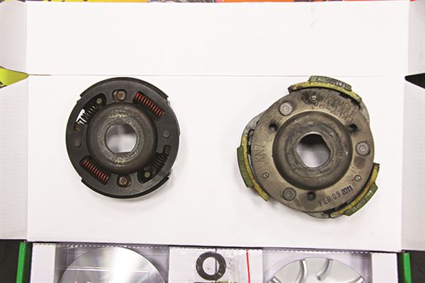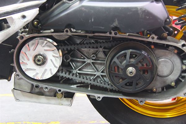 賽道上對於賽車的重量斤斤計較已經不是什麼新聞了,拆除了許多車上用不到的零件、輕量化的鋁合金鍛造框,並且在傳動方面更是比原廠重量輕了一倍!唭哩岸選擇使用WBO萬寶的傳動部品,在達到輕量化的目的下,依然兼顧剛性!並且使用秘密武器的特殊皮帶!對於車輛本身會旋轉的零件,假如能降低重量的話效益可是其他地方偷輕所比不上的!