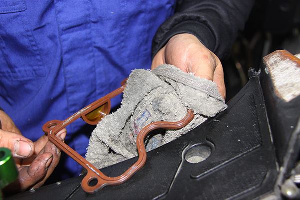 氣密用的墊圈需把殘於墊片膠清除乾淨,並抹上新的