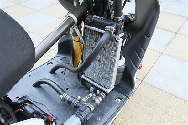 比照赤兔採用Majesty 125的零件進行加工。一來是免去訂製品在維護上較不便的困擾(許多料件可使用原廠部品替換),二來Majesty 125的水冷排對於勁戰的半套水冷來說大小適中