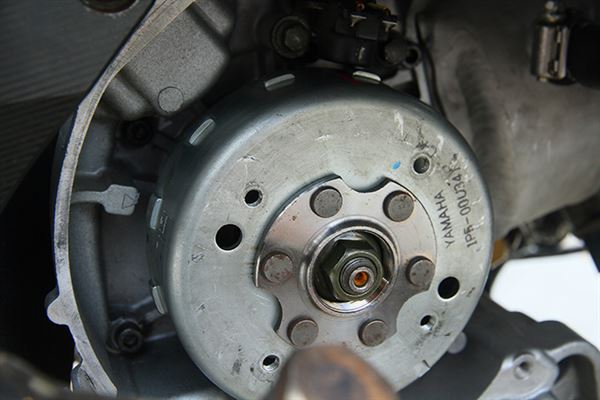 電盤的輕量化對減輕曲軸旋轉時的負擔來說效果顯著,因此是許多比賽車必改的項目。由於已經使用水冷系統,加上缸頭前方塑膠版已拆下加強撞風效果,電盤上已經不需要鎖風扇,因而將風扇鎖點的厚度全部車掉達到輕量化
