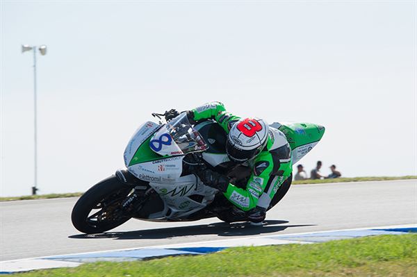 在SUPERBIKE 第一回合比完之後,緊接著登場的是SUPERSPORT的決賽,而比賽依然在大雨中進行。