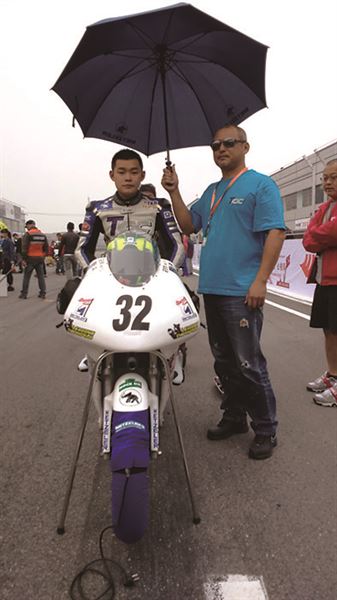 北京的清晨總有著不小的霧霾,星期天的氣溫比起前一天又降了一些,莊安育雖然憑藉著過硬的技術在前一天的Race1中勝出,但畢竟對於金港賽道的特性不是那麼熟悉。在星期天上午的Warm Up中小莊就因為賽道溫度過低不慎發生轉倒,雖然經過車隊的緊急搶修賽車並無大礙,但也因此讓莊安育對CRRC這樣的全國性賽事重新產生了更高的警惕。