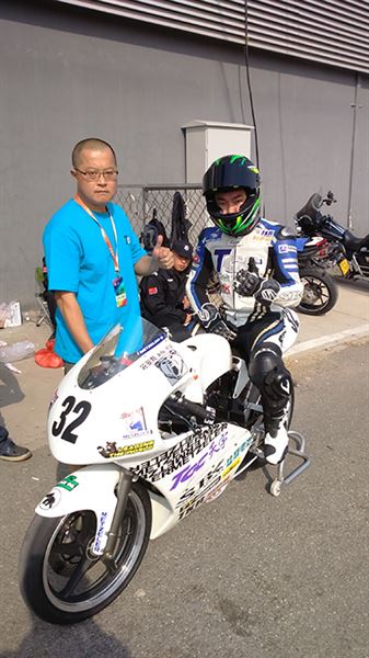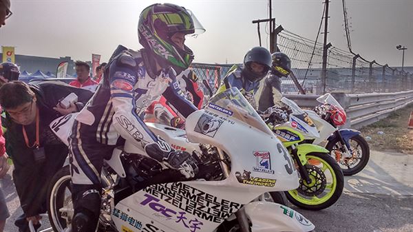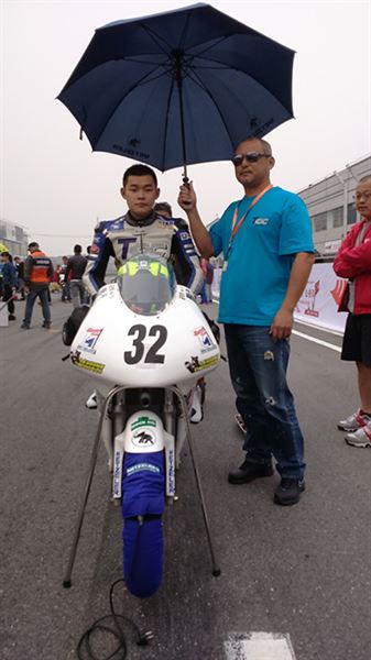 北京的清晨總有著不小的霧霾,星期天的氣溫比起前一天又降了一些,莊安育雖然憑藉著過硬的技術在前一天的Race1中勝出,但畢竟對於金港賽道的特性不是那麼熟悉。在星期天上午的Warm Up中小莊就因為賽道溫度過低不慎發生轉倒,雖然經過車隊的緊急搶修賽車並無大礙,但也因此讓莊安育對CRRC這樣的全國性賽事重新產生了更高的警惕。