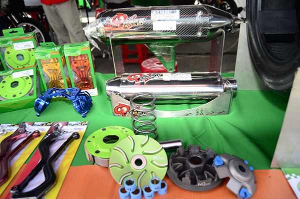 GP十全車業不論在速克達或檔車領域都有推出相當豐富的產品,而本次也贊助統規KTR 150專用H4車手把,而現場攤位也主打速克達MB黑Power系列傳動組,普利盤採用鋁合金材質製造,表面高科技奈米氮化鈦處理,讓整體強度大大提升!