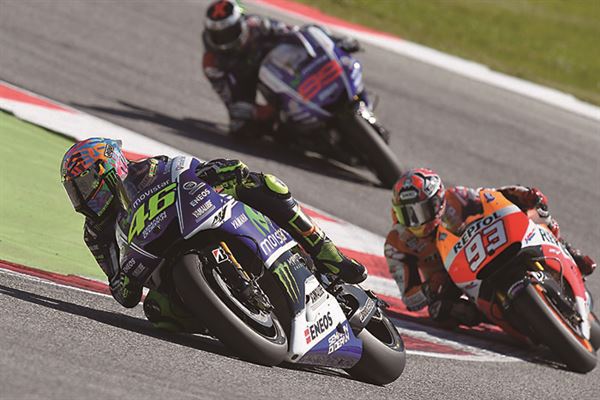 Rossi從第三位起跑,開賽不久了,就超越了同鄉的Dovizioso,與隊友Lorenzo及HRC廠隊Marquez開始三強的廝殺,Lorenzo雖然有著竿位起跑的優勢,但手不住幾圈,便被Rossi及Marquez超越!