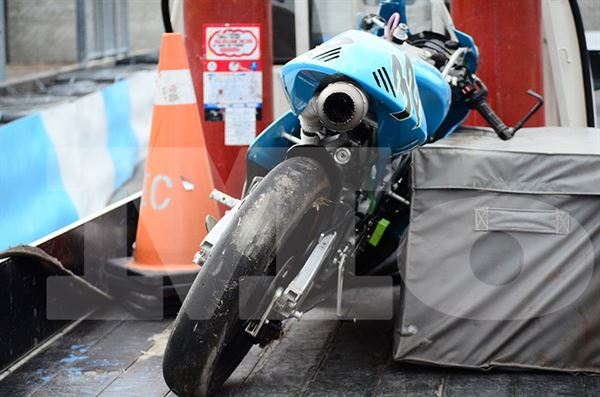 (意外發生後,可以看到賽車狀況相當慘)
