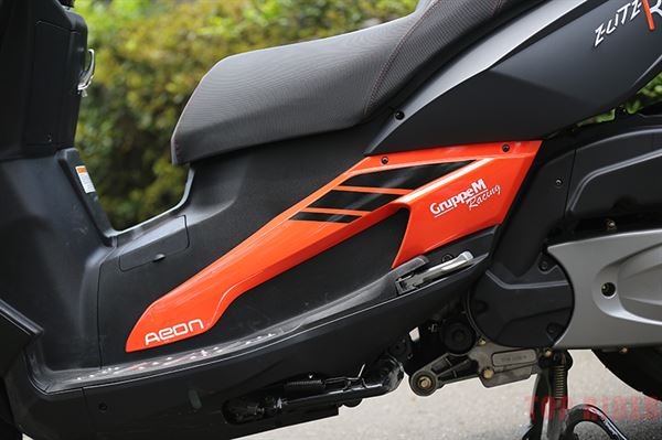 300R也裝配上CNC鋁合金踏板,提升視覺質感的同時也增進防滑能力。另外升級隱藏式油箱蓋採用開蓋保護式套件,除了質感提昇外,雨天對於油箱保護性更佳,也減少入塵和髒汙的機會。為了讓後座更舒適,AEON為300R裝配上ELITE專屬造型後靠墊,造型與實用兼備,替後座乘客帶來更安心舒適的優質體驗。