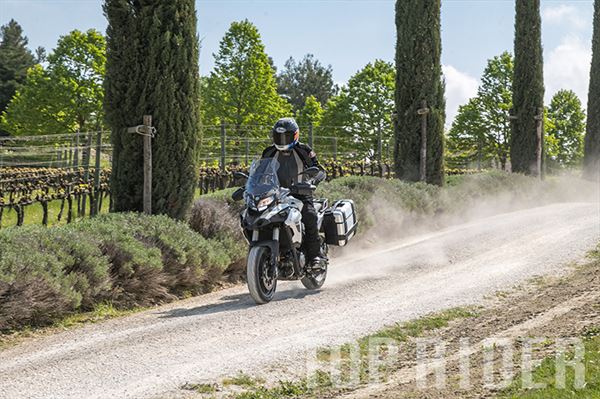 當跨下TRK502按下發動鈕後,馬上就能趕到整台車充滿活力,測試一下怠速1,400rpm,2-1排管發出的浪聲非常獨有。多虧了那條平衡軸才能使整台車在行駛中都能保持順暢,雖然在轉速跑上7,000rpm時偶爾會在腳踏的部分有些為抖,但基本上在整個騎乘過程中都不會讓人感到疲憊。