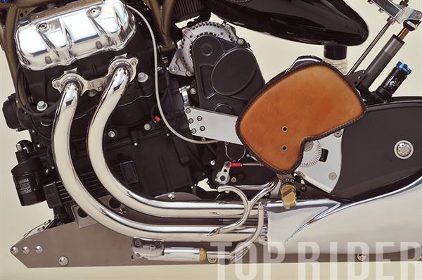 1650 cc縱置V型四缸,皮製淺色系腳踏檔板與深色的車身產生強烈對比美感