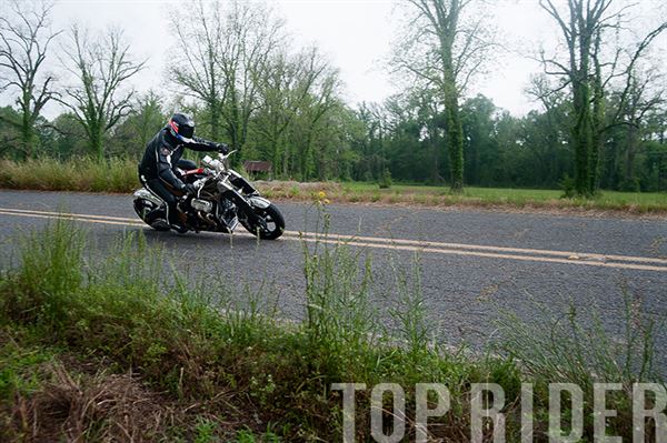 上路後,Motus V4引擎其實沒有裝平衡器,而Nesbitt在變速箱上面做垂直型的改裝,讓騎乘時無論轉速、時速在哪都能完全的有穩定性,且還不會一直震動。偶爾在低轉時,用力吹起油門,排氣管發出V4的嘶吼聲其實還真的有點像美國V8肌肉引擎的聲音。其他時候就有點向二缸引擎的聲音,不過轉速超過6,000rpm時發出的聲音卻如同直線加速賽的車子一樣有著兇猛的浪聲,不管何時,其實坐在上面聽著不同段的聲音就是最大的樂趣。