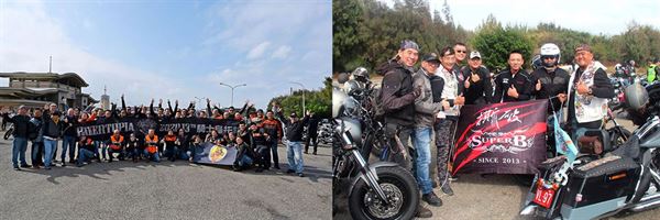 青虫樂團與車友合影,吉他手Alan(右4) 也是哈雷騎士,隸屬天合車隊