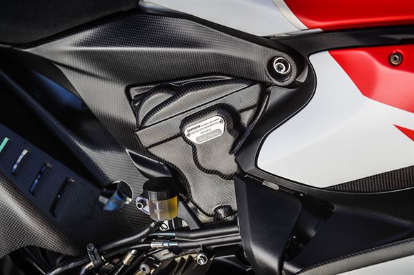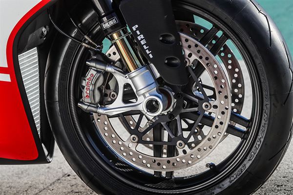 採用比鎂合金材質還要更輕的碳纖維輪框,與藍本的1299 Panigale相比減輕了1.4公斤的重量,同時也降低了前後輪轉動的慣性