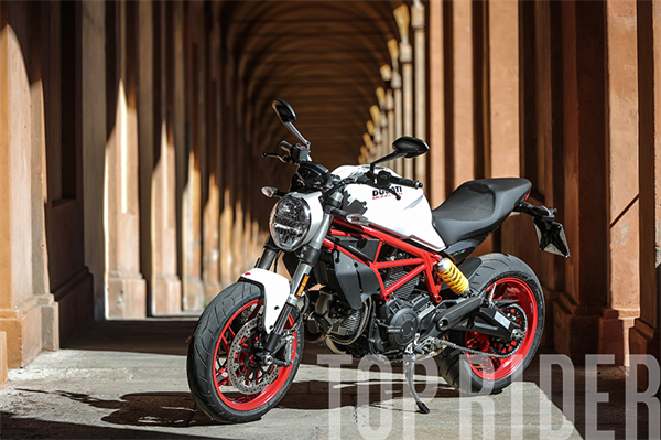 Monster 797舒適易上手的特性,就連在短時間內連續試乘45台797的DUCATI專業試車手Leo Serafino都樂在其中、對這台新氣冷怪獸讚譽有加。這是一台有別於有著一樣引擎然後也對新手友善的Scrambler。797的外表可是酷炫許多,這多要歸功於Monster經典的低把龍頭設計,一個低調卻又讓人耳目一新的車身和它正字標記般的圓型頭燈。這樣的車型馬上就讓人覺得有跑車的感覺,卻又不至於太讓人無可駕馭。