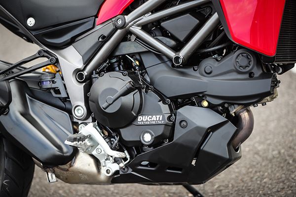 937cc Testastretta L型雙缸引擎,能輸出和Hypermotard相同的動力表現,113bhp轉速9,000rpm,不過動力表現也會因不同的騎乘模式而有所變動,像是Urban和Enduro模式的最大動力輸出量則為75bhp。變換騎乘模式也比Hypermotard更容易,DUCATI重新設計左手握把的控制鈕,使騎士能輕鬆變換。四種騎乘模式則各別有BOSCH 9.1MP三段式ABS系統和八段可調式DTS循跡控制,而DUCATI Safety Pack(DSP)則是標配。Multistrada 950具備著豐富的電控系統,但這系統配置似乎也意味著它無法使用1200所採用的BOSCH IMU及彎道ABS。不過,這點倒是不會令人失望,畢竟一開始就知道這台車本來就不配複雜的電控系統,簡易輕鬆操控才是它的重點。