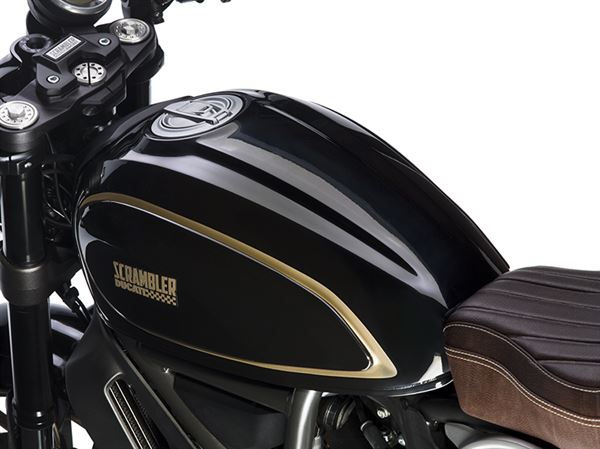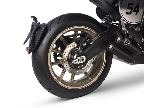 DUCATI在此款的塗裝上面也相當用心,雖然只有咖啡黑和金的配色可選,但Café Racer的塗裝設計,卻明顯展現出1979~1981年時DUCATI所推出一款V型雙缸引擎的900SS。塗裝用上經典配色,連BORRANI香檳色鋁合金輪框更是讓外觀變得更加有質感,且成功的融入了新舊機種的元素。