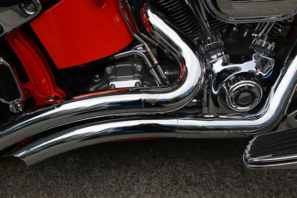 本車除了連車教都採用橘色塗裝,讓全車變得更加亮眼外,也換裝了哈雷御用改裝套件品牌ScreamEagle的產品,尤其引擎部分為重,缸頭蓋及空濾箱讓細部更加吸引人,而朝下的排氣管則是Vence Hines所出品,搭配該廠所推出的改裝電腦在動力提昇上會更為顯著。