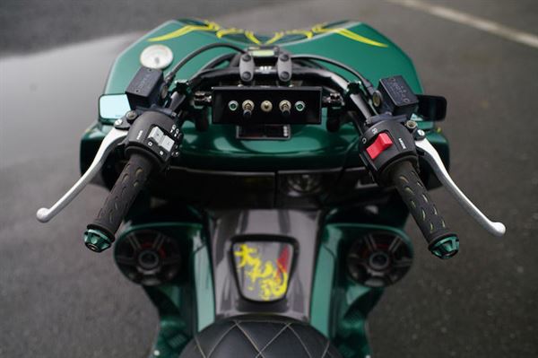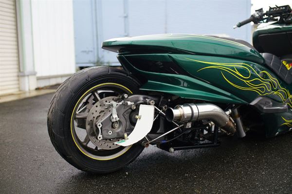 採用原創的排氣管,有著柔和的彎曲線條,避震器隱藏在車身裡面