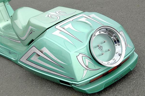 特殊訂製的座墊,和車罩融為一體的配色與塗裝,給予車身不同的風貌
