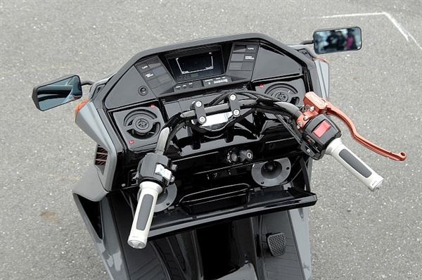龍頭換上了高性能的煞車系統,橘紅色的煞車拉桿和總泵在龍頭上也有畫龍點睛的效果