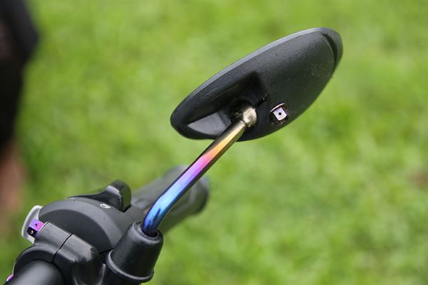 僅僅露出一小部份的後照鏡也是鈦色