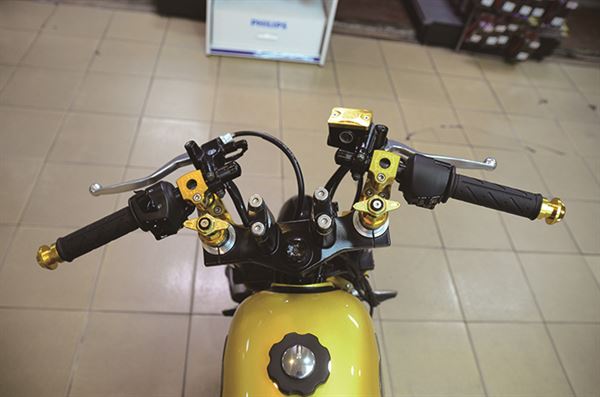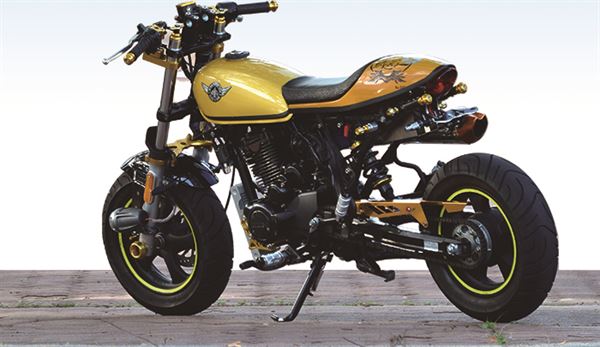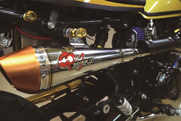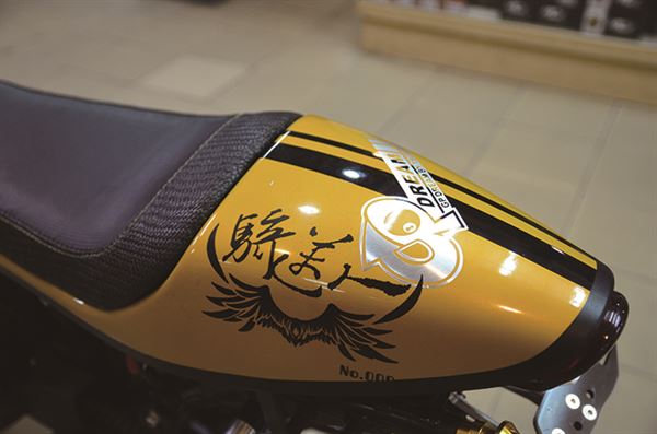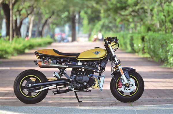 這台原廠就秉持著英倫Cafe Racer的迷你街車設計理念,經過巧手改裝後讓原本的風格更加完美呈現,改裝GP仿賽賽車椅、單座設計更有早期Cafe Racer的標準風格,為了重現早期仿賽的精隨在操控及性能方面也有所升級,GP太子槍後避震器組搭配鋁合金後搖臂,把手也用GP牛魔王萬向把和前叉穩定器來強化,就連動力改裝也與視覺兼具GP手工上繞排氣管和美式油冷排,重現復古風格。