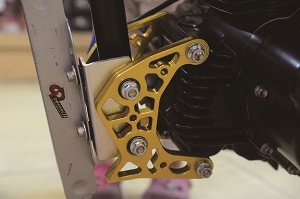 一樣是金黃色客製的引擎吊架,有良好的減震效果及強化車體剛性