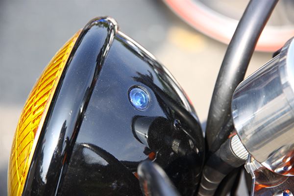 為了視覺上的美感與呈現美式機車的精神,更換了加長型的搖臂,讓軸距更長。副車台的部分也進行了加工,切斷了不必要的部分,讓整體視覺效果更加協調。前後輪的大小也換成了21與16的完美比例,讓車輛尾段更低矮,車頭更高,騎乘起來亦相當舒適。前方視覺上改裝也十分到位,捨去了原先的儀表,並且採用定製的白鐵錶架,只鞍上小小的時速錶,將其他訊號燈直接襄在錶架上,呈現出極簡風格車頭。