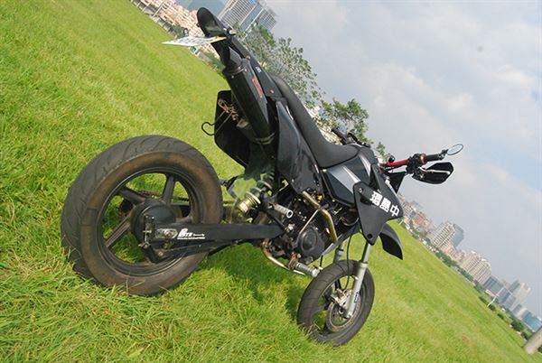 改裝明細:KLX鬼面大燈、開放式護弓、火速粗把、鬼爪握把套、世冠三角台、勁前叉、禾倉五爪、手工單槍上下座、正TW單槍避震器、手工副車台白鐵支架、手工側排前段、DRZ全套車殼。