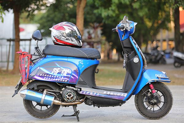 改裝明細:手工燒藍鈦鯉魚嘴排氣管、路權開放彩貼、復古式後照鏡、DY登宇鋁合金前叉、前後八爪鑄造輪框、改裝後避震