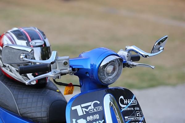 當夜幕低垂,看不清獨特的湛藍塗裝時,取而代之的是魚眼燈頭,在夜晚行車中轉變成為吸睛特色,慎選的燈具也不會因為照眼而影響對向來車;藍鈦鯉魚嘴排氣管配上藍色車殼,視覺感官上整體性及高,一點也不突兀。