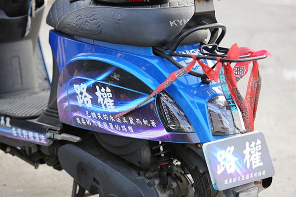 此輛MANY的湛藍塗裝讓人印象深刻,這位車主車身上有著顯著的兩個字,「路權」。或許有些人不太清楚路權的意思,在這邊來小小的說明一下好了,其實路權是一種相對的權利與權力關係,不論是行人或各種車輛,任何用路者在道路上,都有注意路況並相互禮讓的責任與義務,這就是所謂的路權。當這獨一無二的車身塗裝在車道間行進間,猶如彗尾般劃破天際令人無法忽視。
