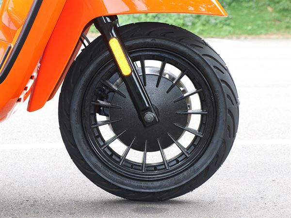 置物箱空間與市面上的國產機車相比是不怎麼理想,但與同級歐洲速克達比較的話是不相上下,大約放進一頂復古3/4安全帽就幾乎全滿,剩下的空間頂多就是塞些小物。前置物空間是採封閉式設計,轉動鑰匙便能開啟,空間雖不大但安全性較高,也附有USB充電孔。