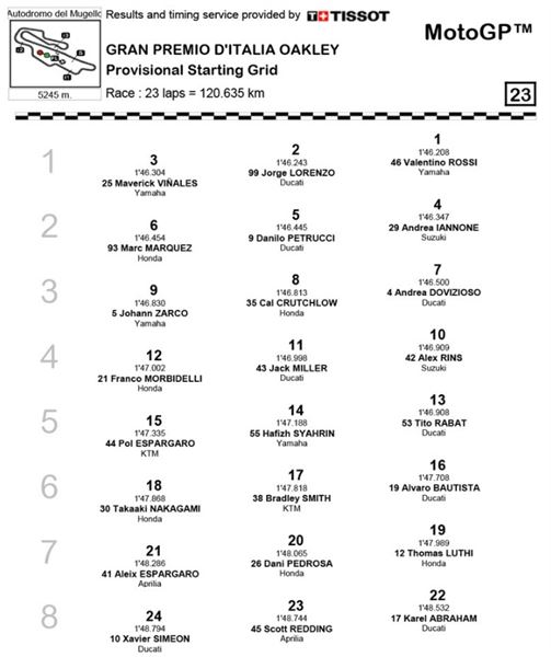 MotoGP:義大利站排位成績