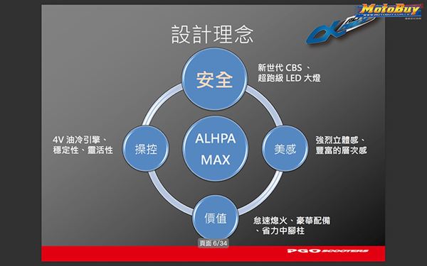 圖/這次ALPHA MAX 125 CBS的設計理念結合、安全、操控、美感、價值。