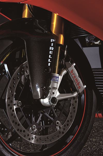 碳纖維前土除,加上Ohlins頂級倒叉和Brembo的輻射卡鉗,通通都配置在這台旗艦車款上。