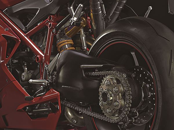 Ducati的超跑在賽道上一直都是所向披靡,但是在原始設定上,SP款式是採取較軟的保守式且轉向較慢的設定。當釋放引擎的強大扭力時,很明顯感受到車子重心從前面移至後方,這時只能藉由在前輪強而有力的Brembo整體式卡鉗來將重心調整回來。Ohlins倒叉和新式的Ohlins TTX後輪避震,可因應騎士以及路況來做彈性的調整。