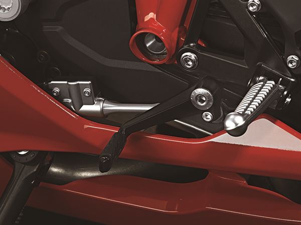 換擋的時候藉助快速排檔系統,使得輕觸腳踏之後無需回油,完美無暇地完成進退檔。在騎乘過程中我總是盡量將體重往前壓,好讓前輪能夠持續保持在地面上,在那樣的姿勢中會使得無法輕易將腳趾抬高以完成進檔動作,但是如果能夠在多跑幾次賽道並做些簡易的調整,這項問題將會解決。