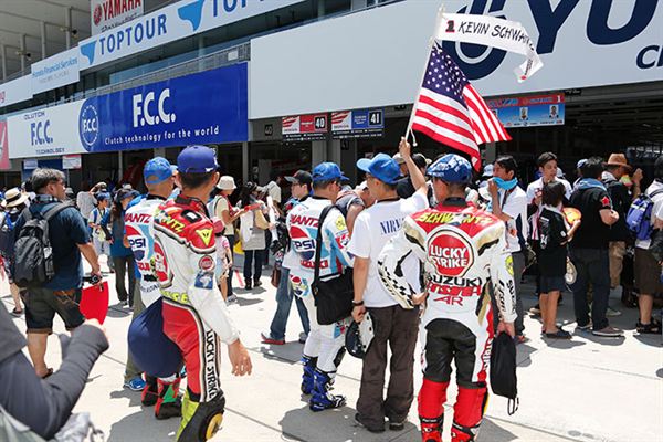 自從去年Kevin Schwantz參加鈴鹿八耐後,除了長久以來的SUZUKI車迷外,相信也有越來越多的年輕騎士好奇他當年的事蹟,今年又發現了好幾位穿著復刻戰袍的粉絲來到現場,相信Schwantz本人看到一定也非常開心。