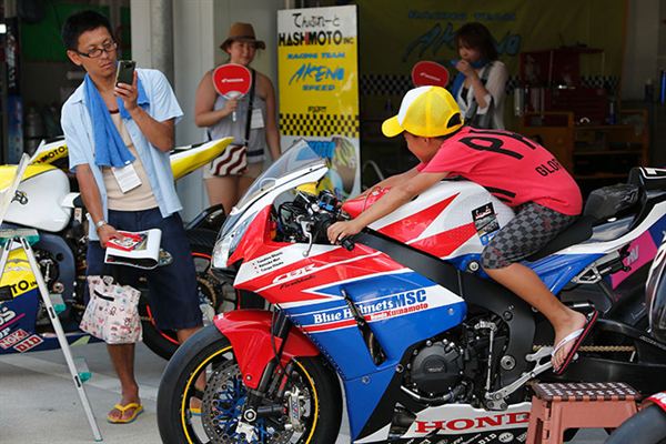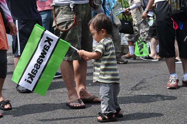 這位小朋友手上拿著KAWASAKI的旗幟是不是很可愛呢?在日本賽車絕對不等於飆車,而是一種正式的運動項目,從小培養孩子對摩托車的興趣可說是再正常不過,而頂尖的賽車手更是要從幼稚園時期就開始練車呢!