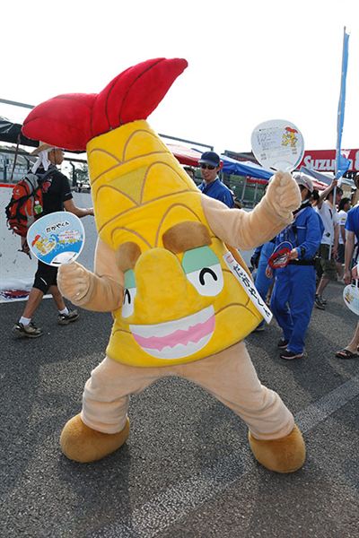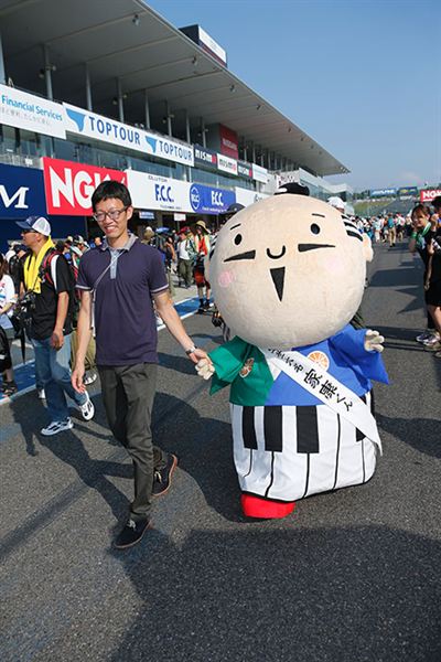 除了到鈴鹿賽道替濱松市三間大廠旗下各車隊加油打氣的家康君,還有許多吉祥物來到現場爭取曝光,剛誕生不久的Dagaya君就是個明顯的例子,頂著烈日也要拼名拜票,希望能奪下2014日本各地吉祥物票選的冠軍!