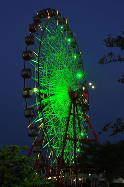 已經與遊樂園結合的鈴鹿賽道,無論從何處觀看都能看見高聳的摩天輪,上頭斗大的CocaCola Zero更是醒目,等到晚上時摩天輪便會點燈,無論是站在地面欣賞,還是搭上去享受兩人世界,都是來到鈴鹿賽道一定要體驗的。