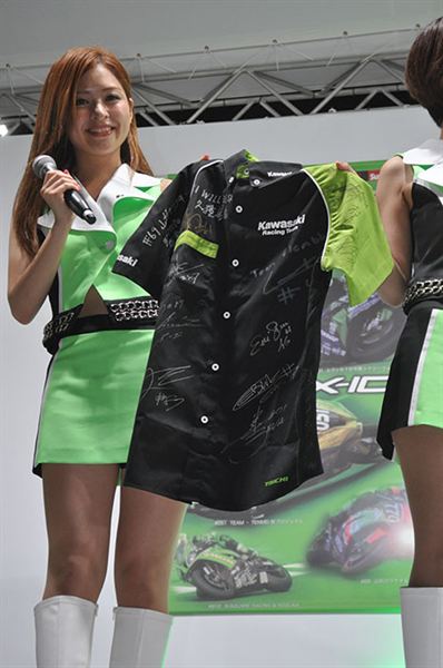 就像照片中展示的KAWASAKI經理衫,上頭有車手及許多車隊高層的簽名,一拿出來就讓現場陷入瘋狂,不用說也知道是數量極為稀少的限定品,而且是只有來到現場才有機會拿到,不帶回家當紀念就太說不過去啦。