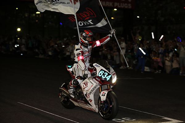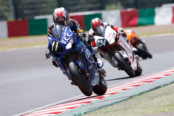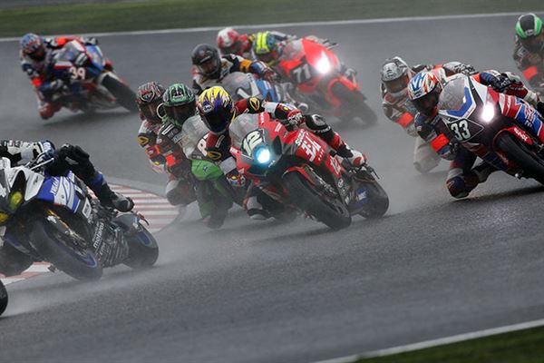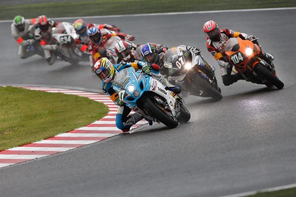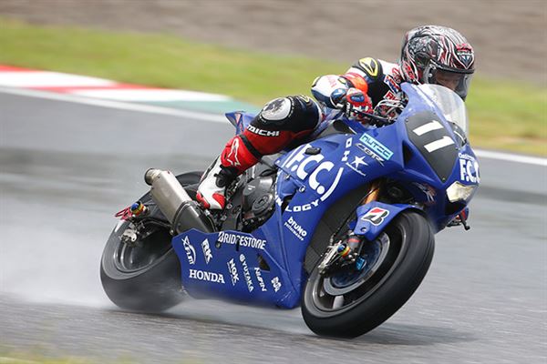 由於雨勢實在是大到讓原訂當地時間早上11點整開跑的比賽,整整延後了一個多小時開跑,但結束時間並沒有往後順延,八耐也變成了七耐,但準備了一整年就為了這一場,盡管對於雨天騎車心中多少會有些顧忌,硬著頭皮還是要上。鳴槍起跑後,最前方由『F.C.C. TSR Honda』、『Team Kagayama & Verity』與『TOHO Racing with Moriwaki』三隊展開激戰,一開始由『TOHO Racing with Moriwaki』的山口辰也超越『Team Kagayama & Verity』的Aegerter後暫時領先,但『F.C.C. TSR Honda』的秋吉耕佑速度更快,沒一會兒功夫就超越山口辰也,領先群雄並形成了穩定的獨走局面。