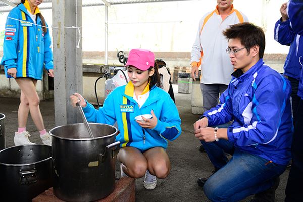 從車友下車簽到時,SUZUKI便準備了熱騰騰的薑茶,由漂亮的Show Girl們奉給遠道而來的車友們,第一道活動便是大家各就各位烤肉填肚子啦,而酒足飯飽之後,抽獎活動、各種團康遊戲也出爐,讓車友們可以活動一下筋骨。