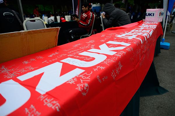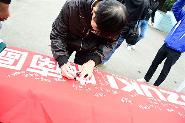 在活動布條上簽下大名,每一次的布條SUZUKI都會細心的保管起來紀念