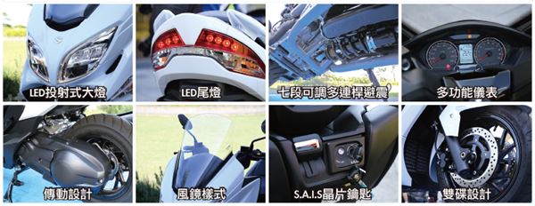 先從外觀上來說,整車的側殼採用更加上揚的線條設計,訴求更具運動化的外觀,而SUZUKI的李副理也說明、這輛車的訴求就是運動、銳利、修長、優雅,不但強化了他的運動性能、同時也保持他優雅質感的外型設計,相較於舊款的AN400能夠發現尾殼的面及大幅縮小,視覺上也更具運動化。內在方面這次採用了輕量化的車架、車體重量大幅減輕了12KG、為了提供更舒適的騎乘感受、也透過腳踏板的內縮設計讓雙腳能更輕鬆著地,同時讓座店加長20cm,更挺直的坐姿降低長途的疲憊感,大燈方面採用投射式LED燈、更具科技質感,性能方面、採用DOHC水冷引擎能夠輸出31.2PS的動力,改善並且強化中低速扭力,懸吊方面則是搭載了七段可調的多連桿中置避震,它的優勢就不再多說、讓人相當期待實際試乘時的動態表現。這次BURGMAN 400可是做足了準備迎接台灣市場,但是售價目前還未公布,原廠也宣稱會讓這款車具有一定的競爭力,同時也在爭取更實惠的售價,就讓我們拭目以待。